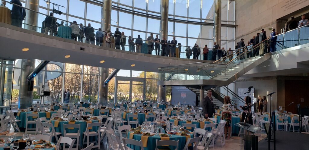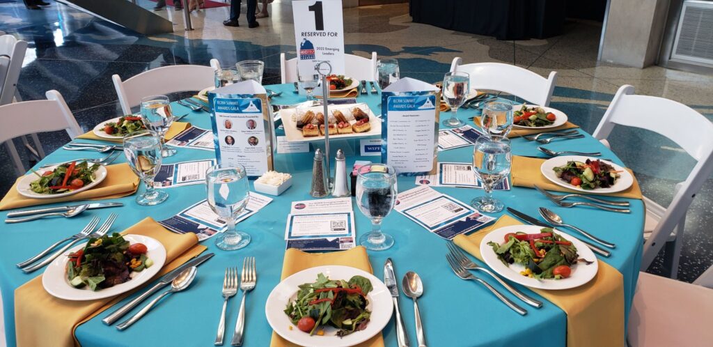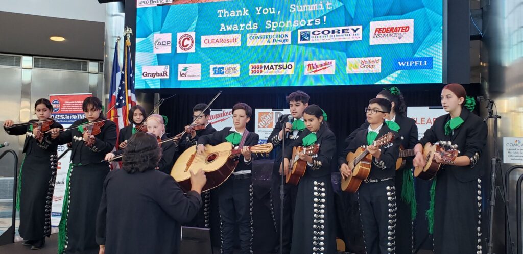 On Thursday, May 5, more than 225 leaders in electrical contracting and renewable energy in the Rocky Mountain region gathered to recognize and celebrate excellence in the energy, electrical, and green building fields through the prestigious 16th Annual Summit Awards Gala, hosted by Independent Electrical Contractors Rocky Mountain (IECRM). The Cable Center at DU sparkled and provided the elegant backdrop for the Gala. The IECRM Event Committee selected the sophisticated, modern, and stunning venue in 2020 and finally presented the experience to its members in person for the first time in two years, after two successful virtual reality Summit Awards events. As guests arrived at the beautiful venue, they were greeted “VIP style” with photos on the red carpet and the step-and-repeat banner that featured the logos of the event sponsors. Guests mingled and networked for an extended cocktail hour, truly enjoying the chance to see each other in person. During the networking cocktail hour, guests enjoyed passed hors d’oeuvres and signature cocktails, with opportunities to explore the Cable Center’s exhibits. The theme of the evening’s event gave a slight nod to Cinco de Mayo with elegant renditions of Mexican-inspired cuisine and premium signature drinks including the Megawatt Margarita, Peak Load Paloma, and the Phase Shifter Paloma Mocktail. Live music performances by Mariachi Juvenil de Bryant-Webster filled the air and the much-anticipated award ceremony was about to begin as guests made their way to their seats.