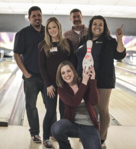 As guests arrived they were welcomed with premium cocktails and networking in a private lounge room. After the welcome reception/cocktail hour, bowlers and non-bowlers gathered at the lanes and spectator area with colleagues, friends, family, and new acquaintances to form teams and enjoy a smokehouse barbeque dinner that was prepared by AMF’s onsite culinary chef “Lucky”. Bowlers had the option to bowl traditional or “funky style” as they competed for prizes and awards. Funky style which consisted of a silly rule for each of the 10 frames – bowl with your opposite hand, bowl through your teammate’s legs, etc. – was a big hit among members and made for a fun team building experience.