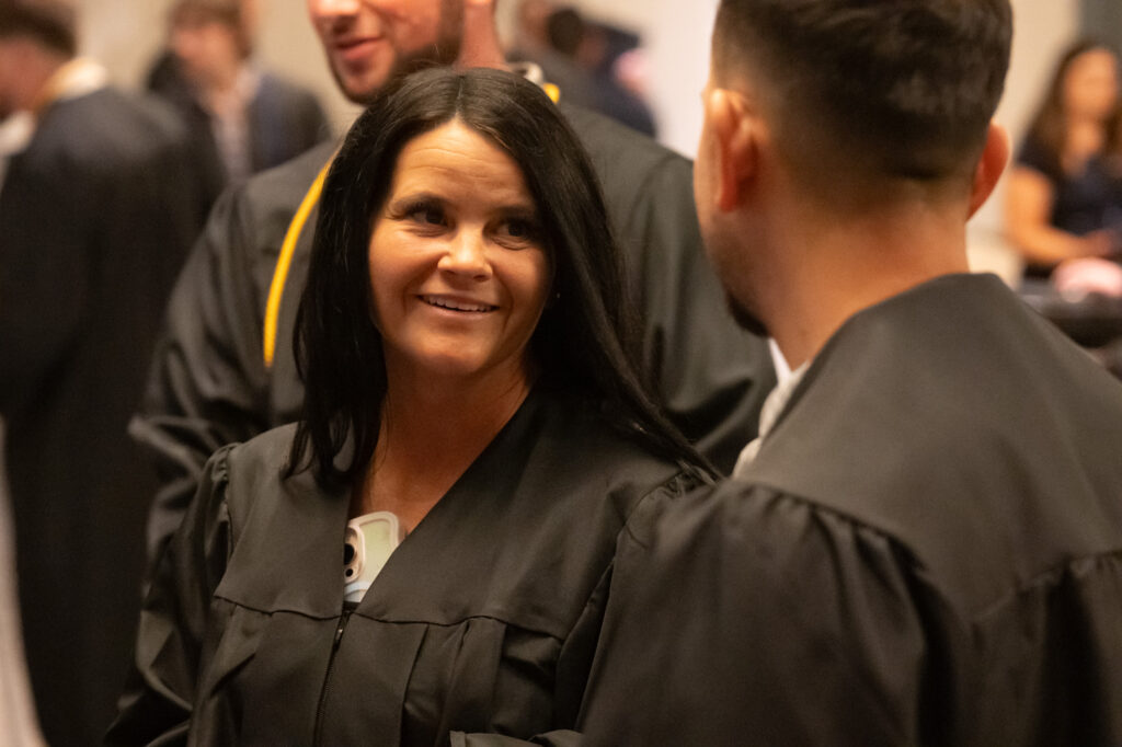 Karla Nugent, Chief Revenue Officer and Founding Partner of Weifield Group Electrical Contracting delivered an inspiring message to graduates using a symbolic relay baton to emphasize the importance of building relationships, showing up as your best self, and embracing lifelong learning by staying curious and proactive.