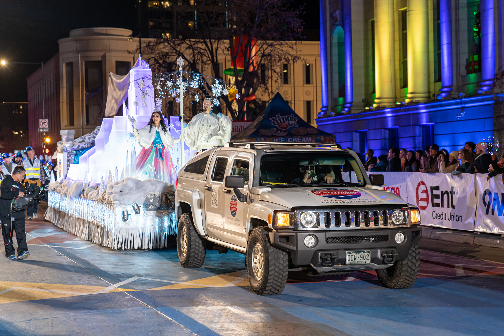 On Friday, December 4, IECRM’s own Angelique Montoya, a 1st-year apprentice with Kenny Electric, made her debut as the Ice Castle Princess in the 2021 9NEWS Parade of Lights. “Apprincess” Angelique and “Apprince” Christian Veeder of Custom Electrical Contractors rode on the IECRM Sparkling Ice Castle Float to represent all IECRM apprentices and the electrical industry while waving to the parade viewers.