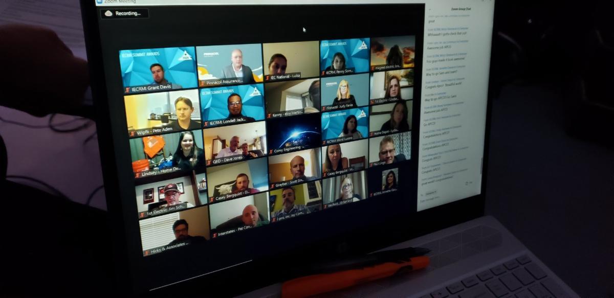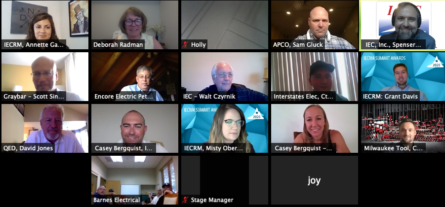 2020 called for an unprecedented approach to this year’s Summit Awards Event. Fabulous and fun Home Depot “Watch Party Buckets” were hand-delivered to audience members’ homes and offices, filled with dinner certificates, beverages, snacks, desserts, party décor, and the hottest items of 2020: masks, hand sanitizer, and toilet paper! Guests were welcomed to a virtual networking cocktail hour, visiting “rooms” hosted by premier sponsor The Home Depot Pro, IEC National CEO Spenser Villwock, IECRM Board Members, and IECRM Staff. Then, the awards show began! With the aid of the “mission control room” in the studio, attendees were able to interact with the hosts and each other in real time throughout the program. The networking continued into the Virtual After Party where guests lingered and congratulated the winners.