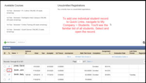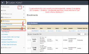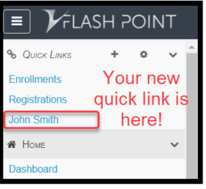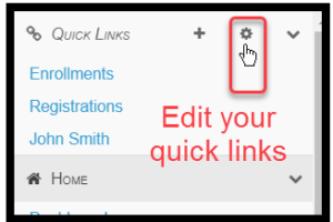 Go to a page, for instance, the list of all your currently enrolled students. Navigate to: My Company > Students > Enrollments. Then simply find Quick Links on the top left of your navigation bar and click on +.