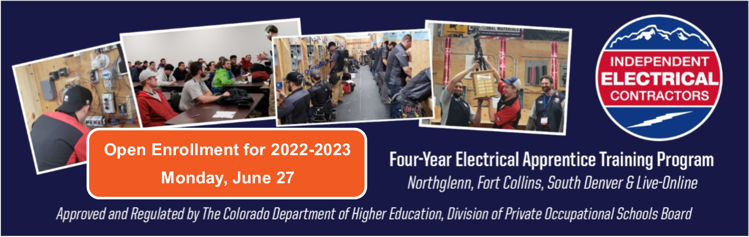 Interested in a career in electrical contracting? Open Enrollment for the Independent Electrical Contractors Rocky Mountain Chapter (IECRM) apprenticeship training program starts on Monday, June 27 for non-member companies and their employees. IECRM member companies can begin enrolling apprentices as early as Monday, June 20. The open enrollment period ends on Friday, July 22 for the next semester which begins on Monday, August 8.